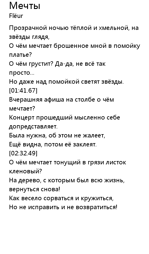 Мечты 歌词