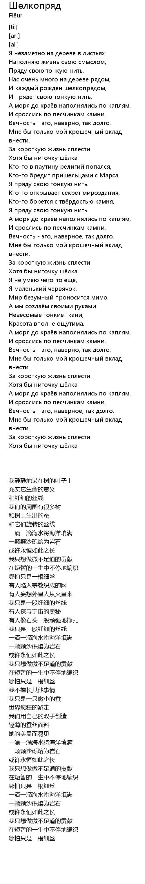 | [03:19.71] | Хотя бы ниточку шёлка. |