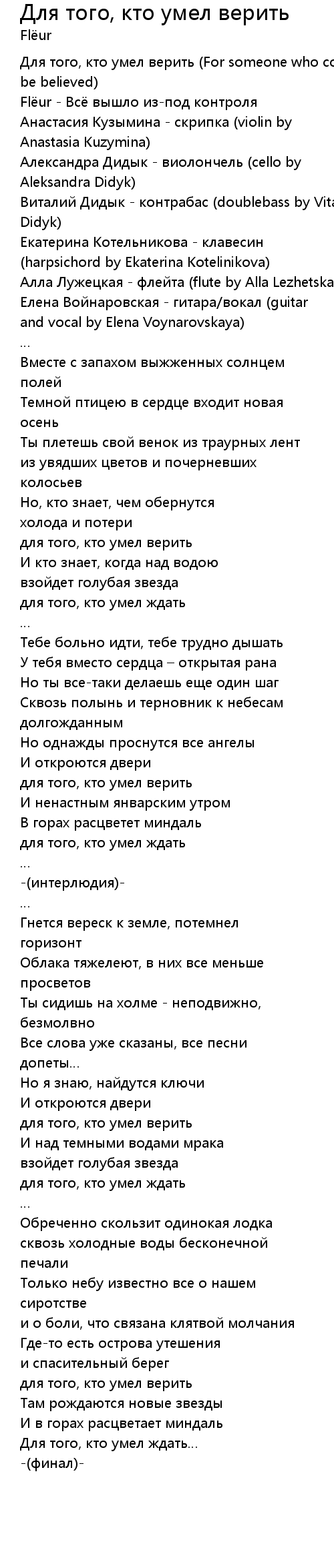 歌曲 Для того, кто умел верить