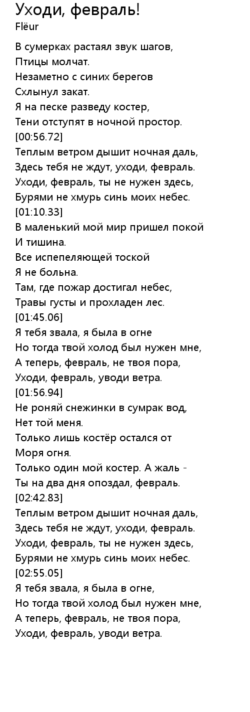[01:04.42] Уходи, февраль, ты не нужен здесь,