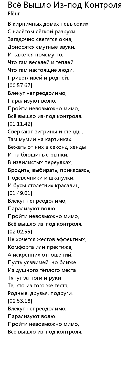 Всё Вышло Из-под Контроля 歌词
