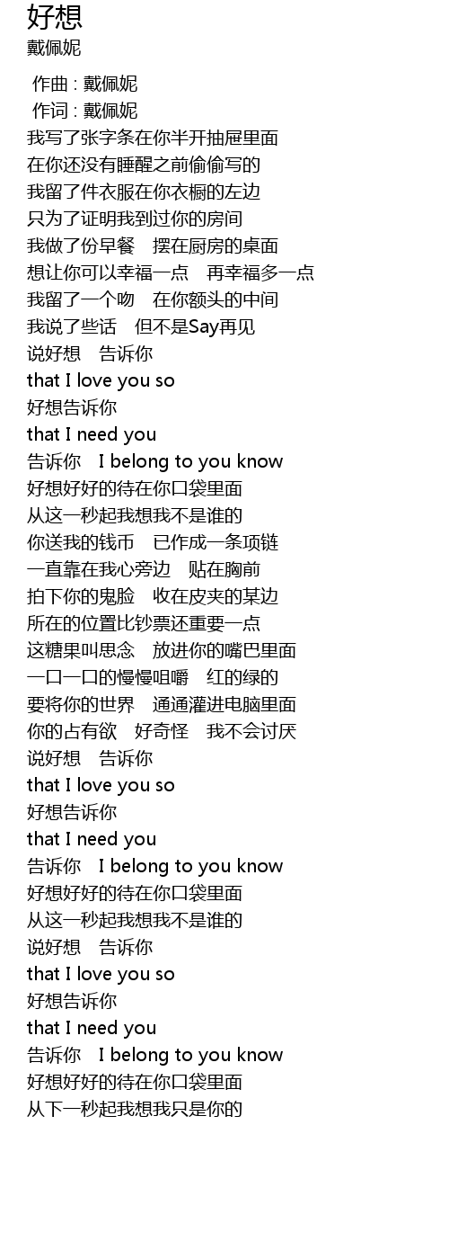 | [01:26.17] | 好想好好的待在你口袋里面 |