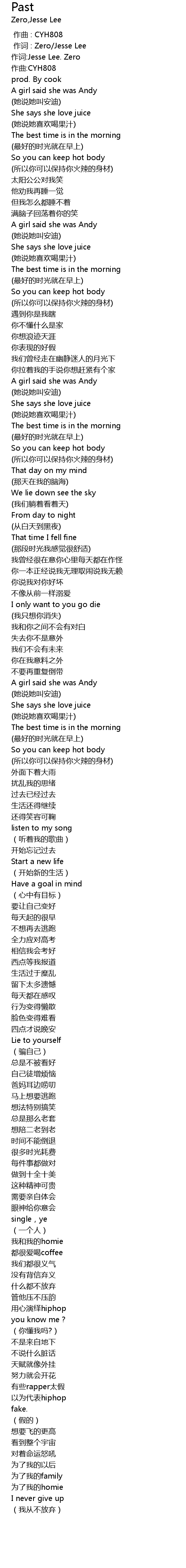 | [00:00.222] | 作词 : Zero/Jesse Lee |