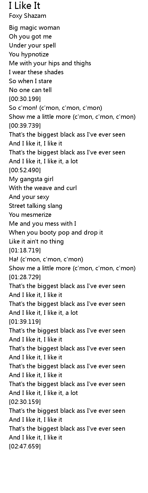 | [00:45.999] | That' s the biggest black ass I' ve ever seen |