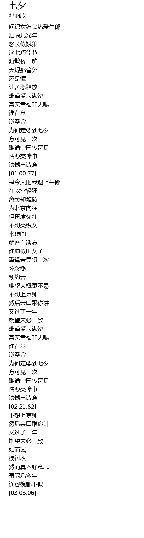 | [00:13.00] | 问织女怎会热爱牛郎 |