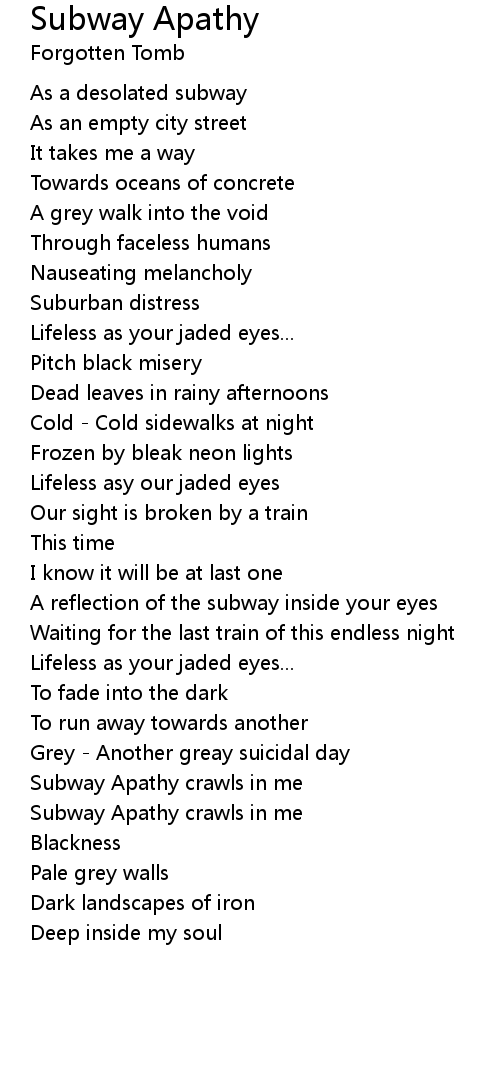 Subway Apathy crawls in me |