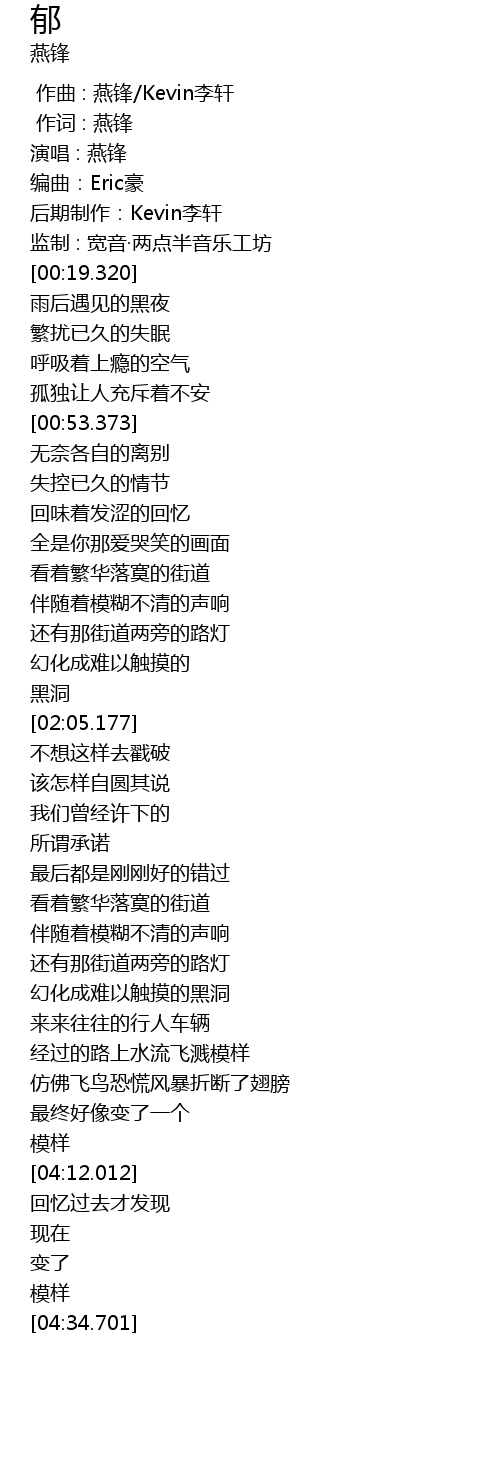 | [00:00.000] | zuò qǔ : yàn fēng Kevin lǐ xuān |