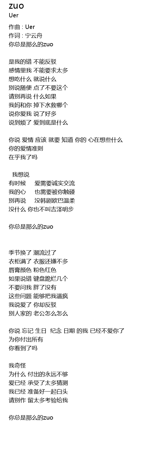 | zuò qǔ : Uer | |