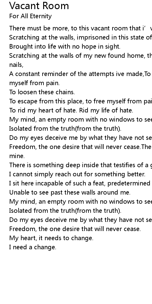 | There must be more, to this vacant room that i' ve been sitting in. | |