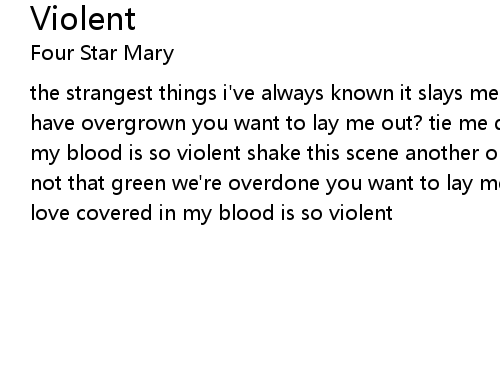 | the strangest things i've always known it slays me everytime darkened fields have overgrown you want to lay me out? tie me down? tie me our love covered in my blood is so violent shake this scene another one it plays me everytime we're not that green we're overdone you want to lay me out? tie me down? tie me our love covered in my blood is so violent |