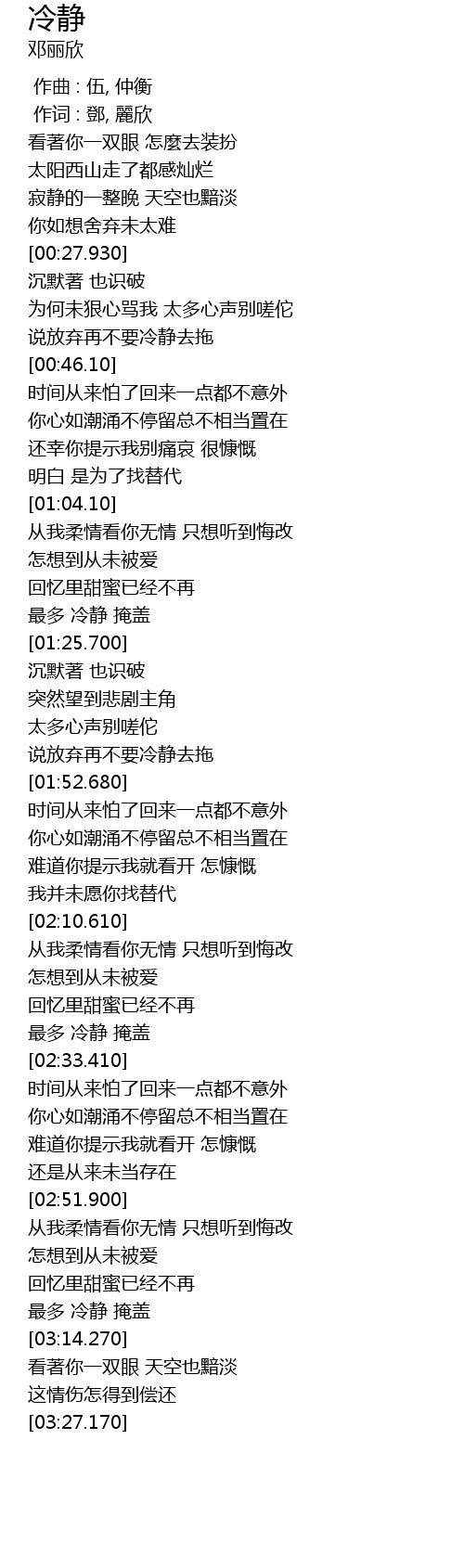| [03:06.330] | 最多 冷静 掩盖 |