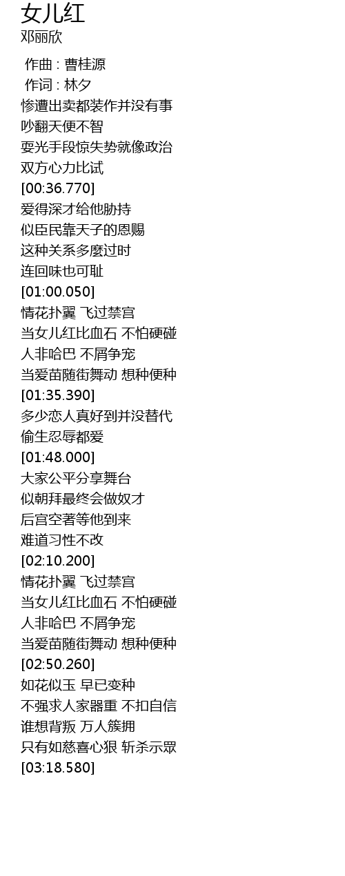 | [02:15.130] | dang nv er hong bi xue shi bu pa ying peng |