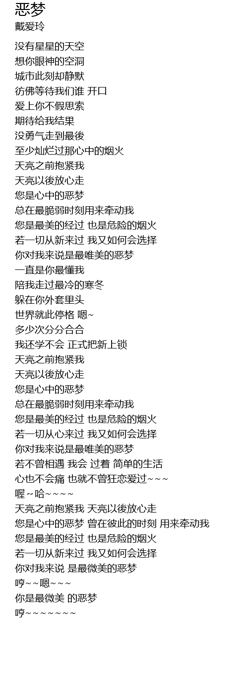 | [03:13.470] | 你对我来说是最唯美的恶梦 |