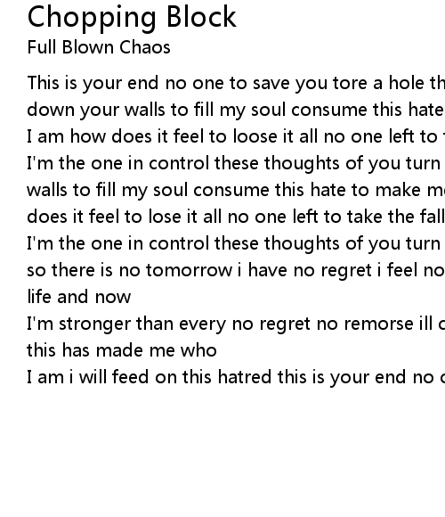 I'm the one in control these thoughts of you turn me to stone crush it all today so there is no tomorrow i have no regret i feel no remorse you tried to take my life and now |