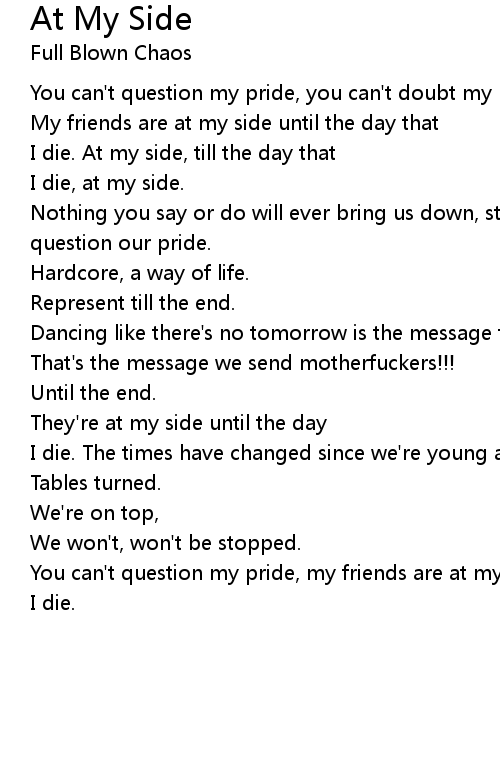 You can't question my pride, my friends are at my side until the day |