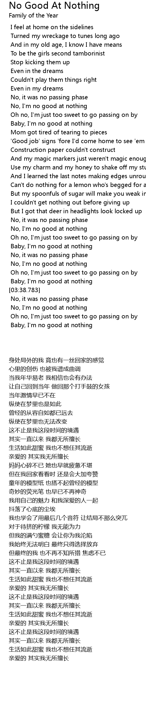Baby, I'm no good at nothing |