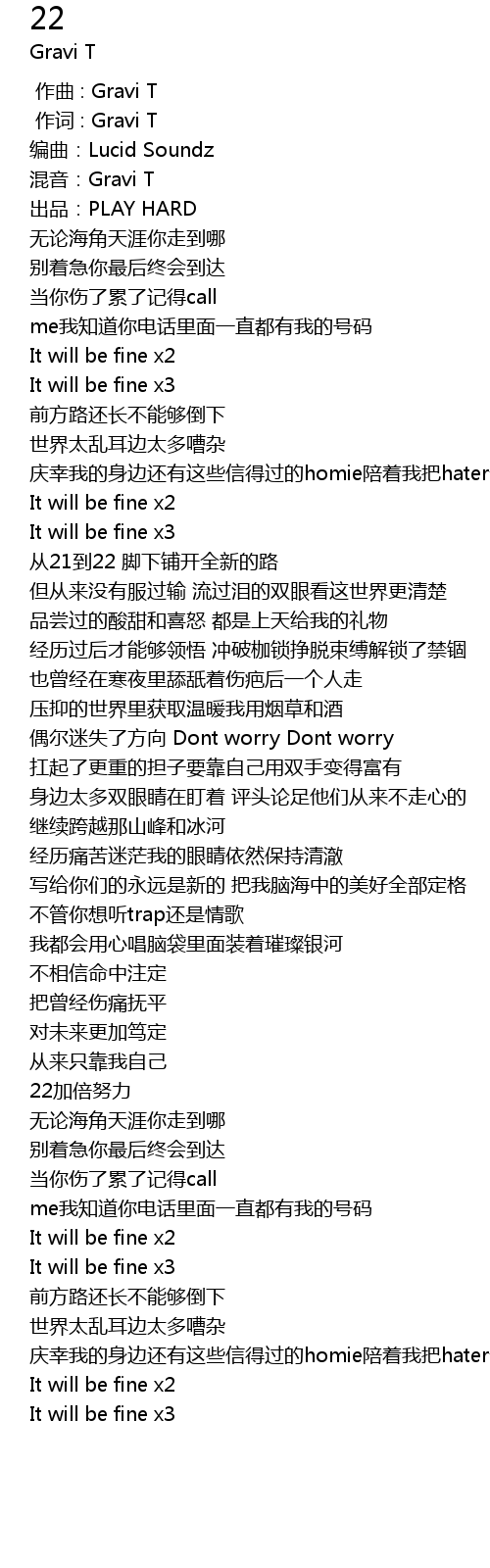 | [00:01.000] | 作词 : Gravi T |