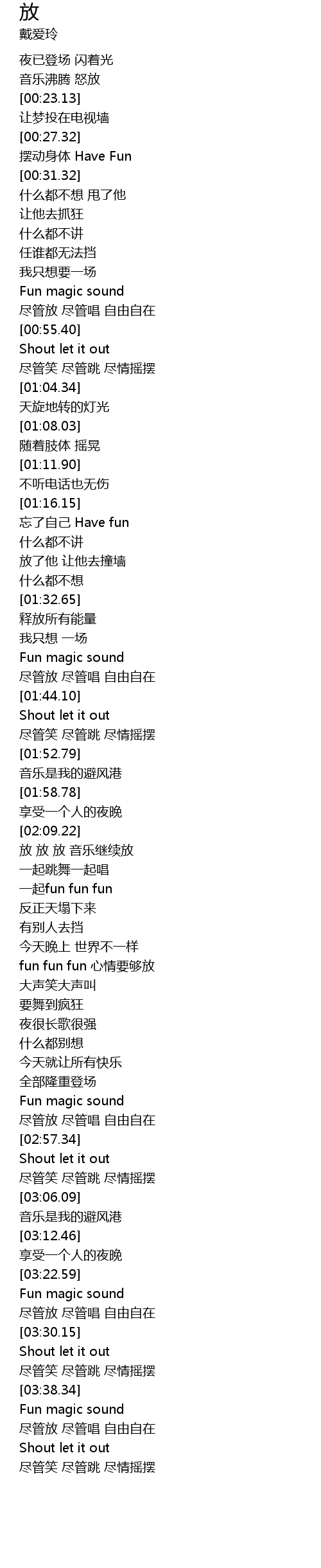 | [02:42.66] | fun fun fun 心情要够放 |