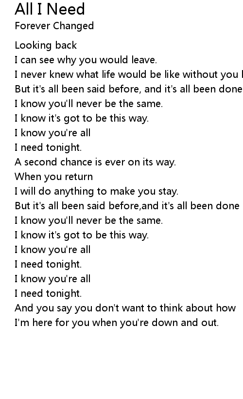 I need tonight. |
