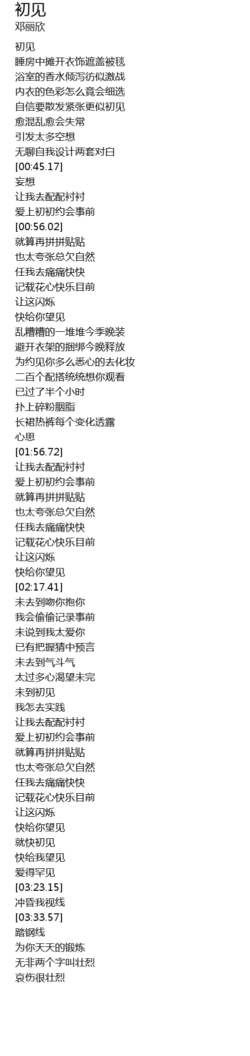 | [00:33.49] | 自信要散发紧张更似初见 |