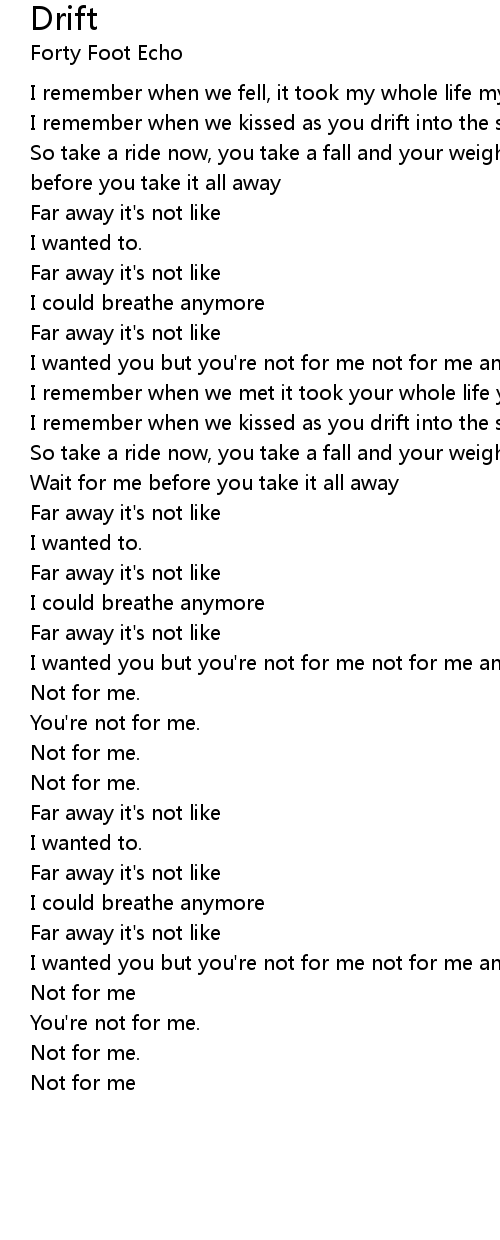 So take a ride now, you take a fall and your weights so shallow wait for me before you take it all away |