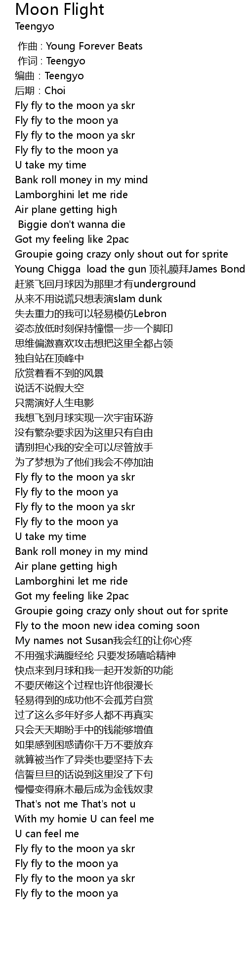 | [02:00.35] | Fly to the moon new idea coming soon |