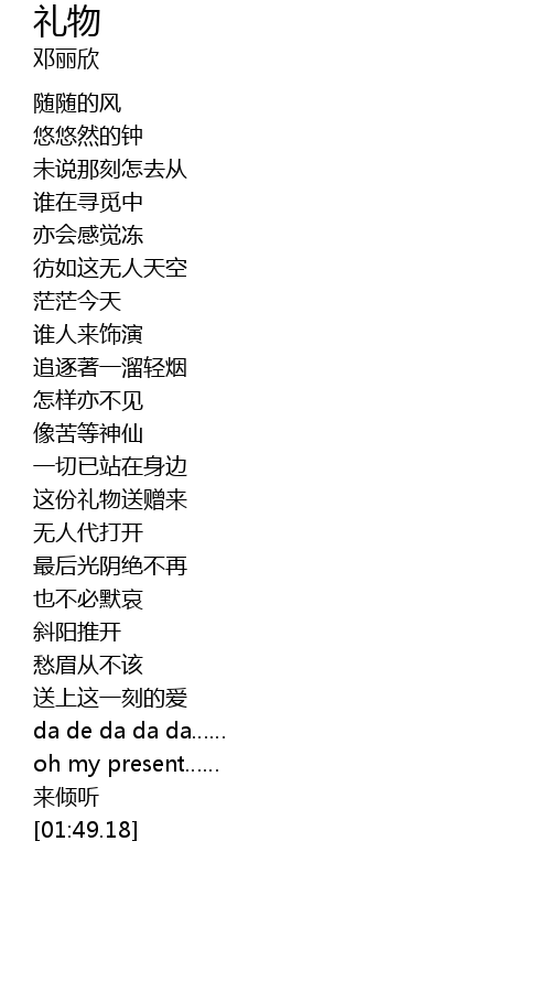 | [00:58.35] | zhè fèn lǐ wù sòng zèng lái |