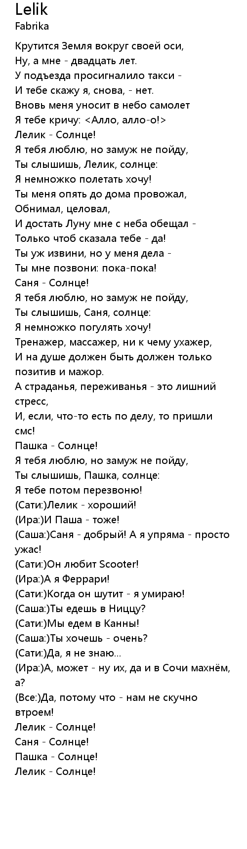 Ты слышишь, Лелик, солнце: |