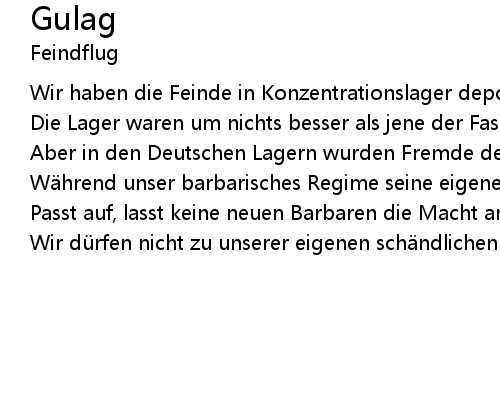 | Wir haben die Feinde in Konzentrationslager deportiert | |