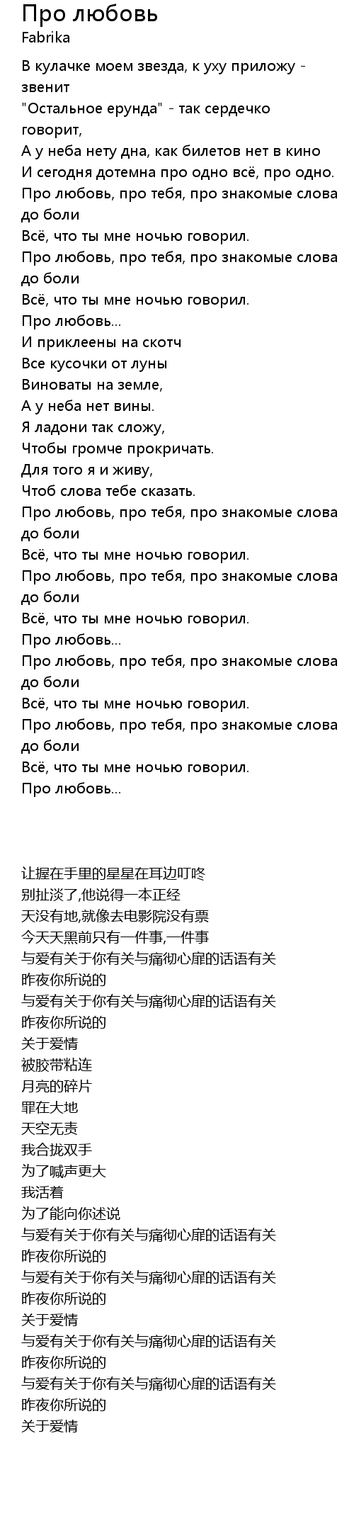 | 歌曲 | Про любовь |