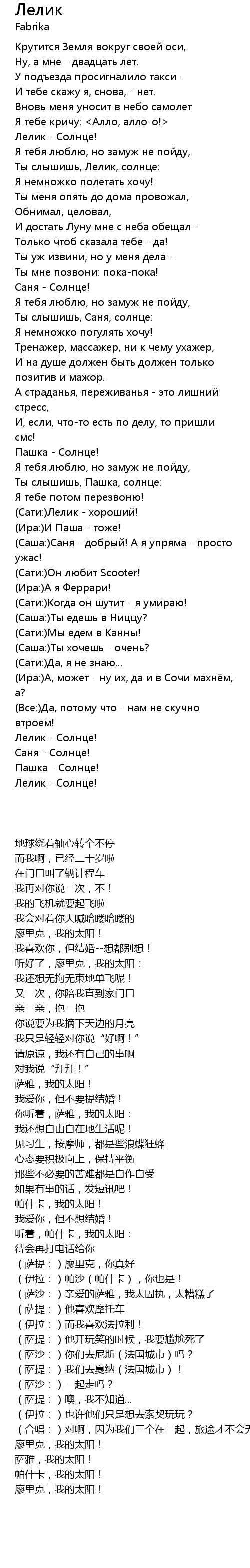 | [01:03.18] | Ты слышишь, Лелик, солнце: |
