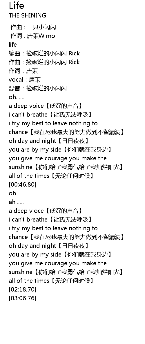 | [00:00.00] | biān qǔ: jiǎn pò làn de xiǎo shǎn shǎn Rick |