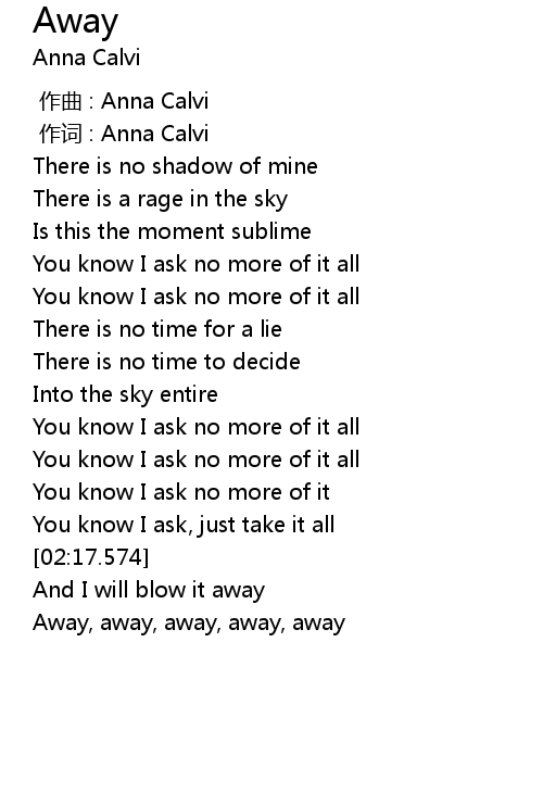 | [02:54.041] | Away, away, away, away, away |