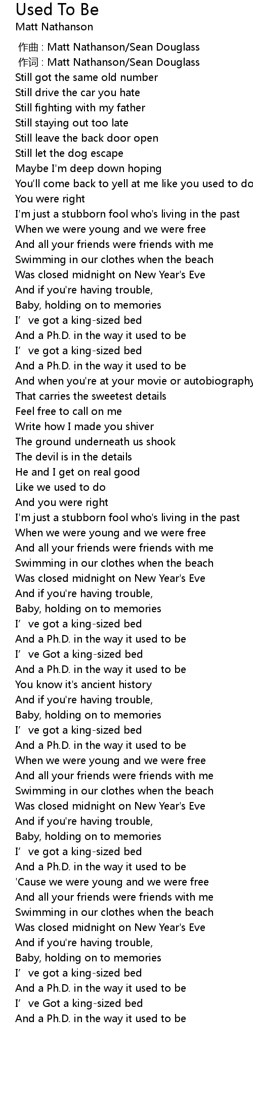 | 歌曲 | Used To Be |