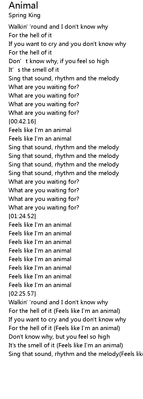 | [02:34.67] | For the hell of it Feels like I' m an animal |
