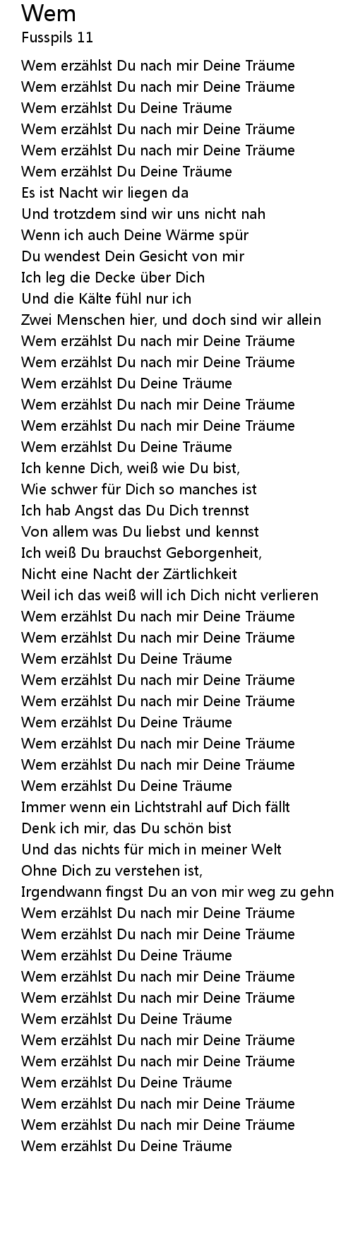 | Wem erz hlst Du nach mir Deine Tr ume | |