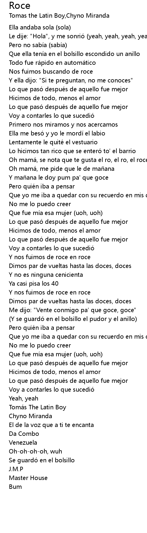 | [01:02.77] | Oh mamá, se nota que te gusta el ro, el ro, el roce |