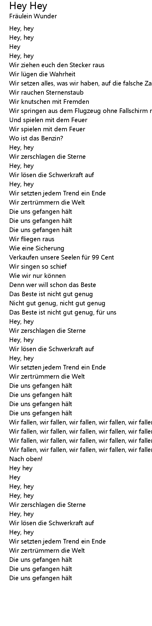 | Wir fallen, wir fallen, wir fallen, wir fallen, wir fallen | |