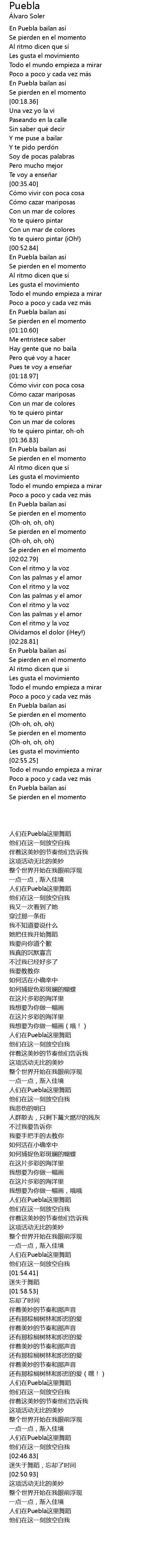 | [01:06.23] | 人们在Puebla这里舞蹈 |