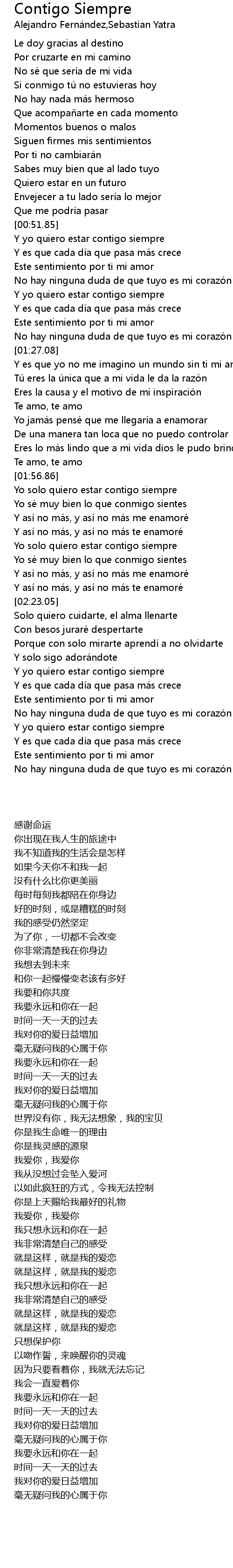 | [02:51.47] | Y yo quiero estar contigo siempre |