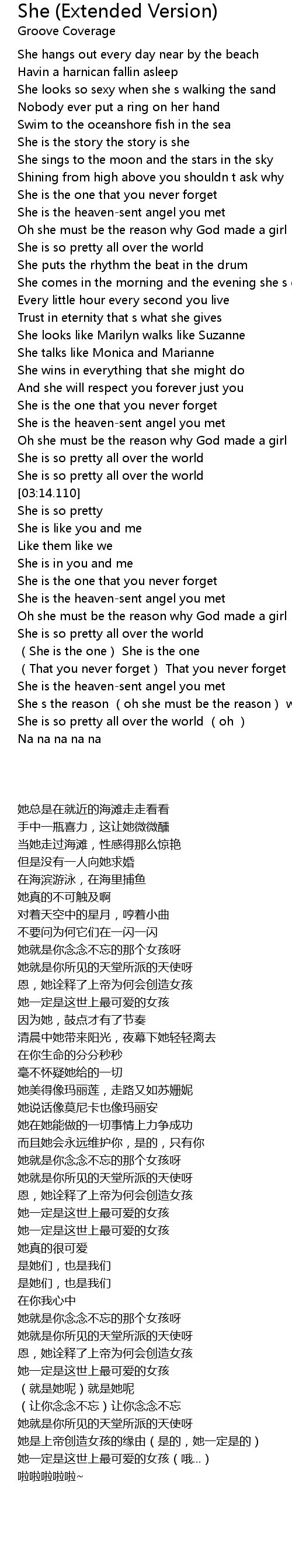 | [04:03.140] | 她是上帝创造女孩的缘由(是的,她一定是的) |