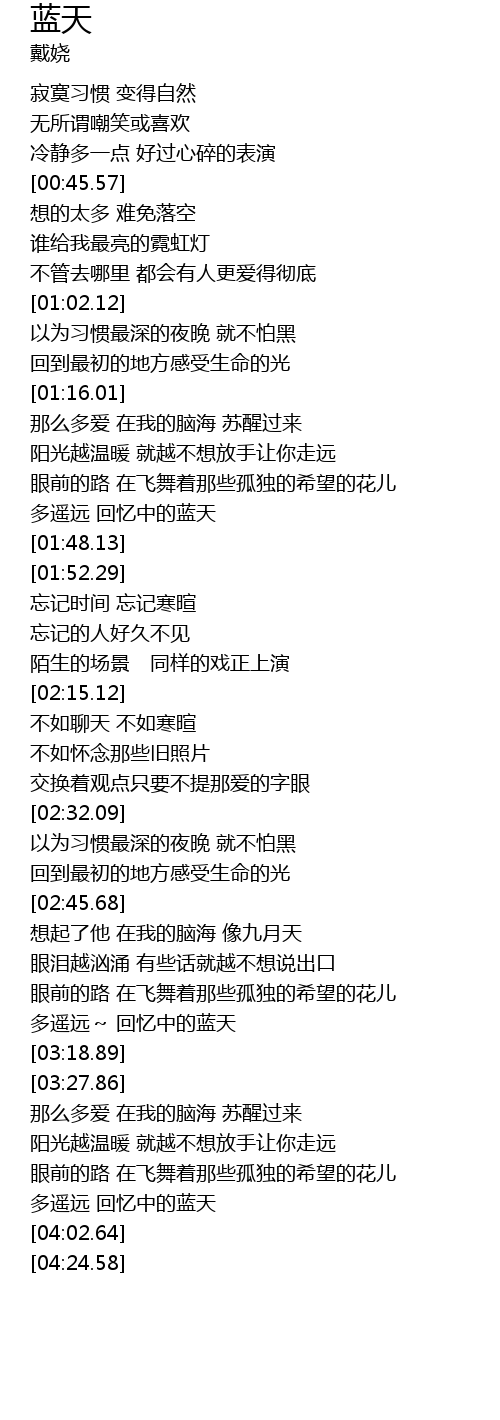 | [01:41.31] | 多遥远 回忆中的蓝天 |