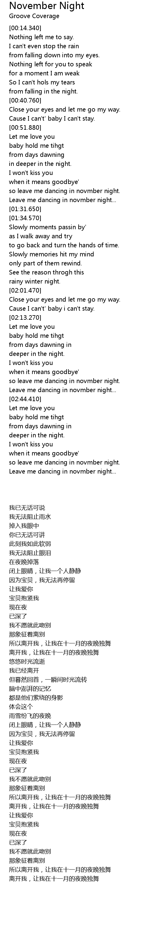 so leave me dancing in novmber night. |