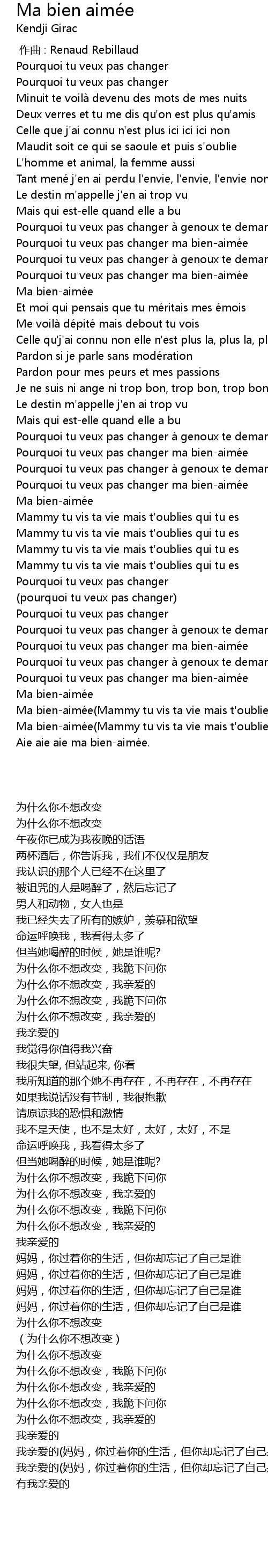 | [01:29.44] | Pourquoi tu veux pas changer ma bienaimé e |