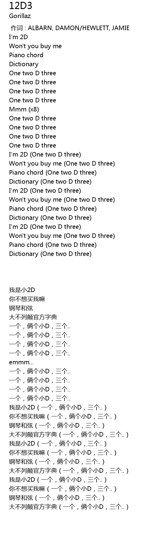 | [02:43.45] | 一个,俩个小D,三个.. |