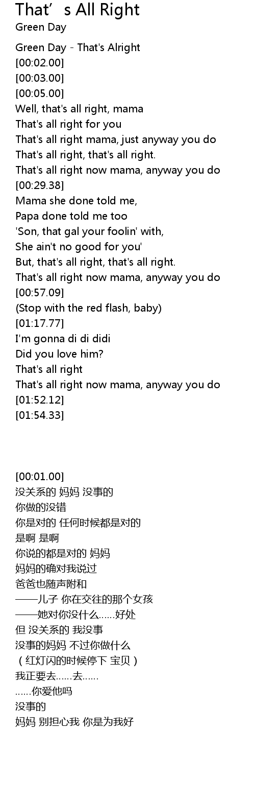 [00:01.00] Green Day - That's Alright