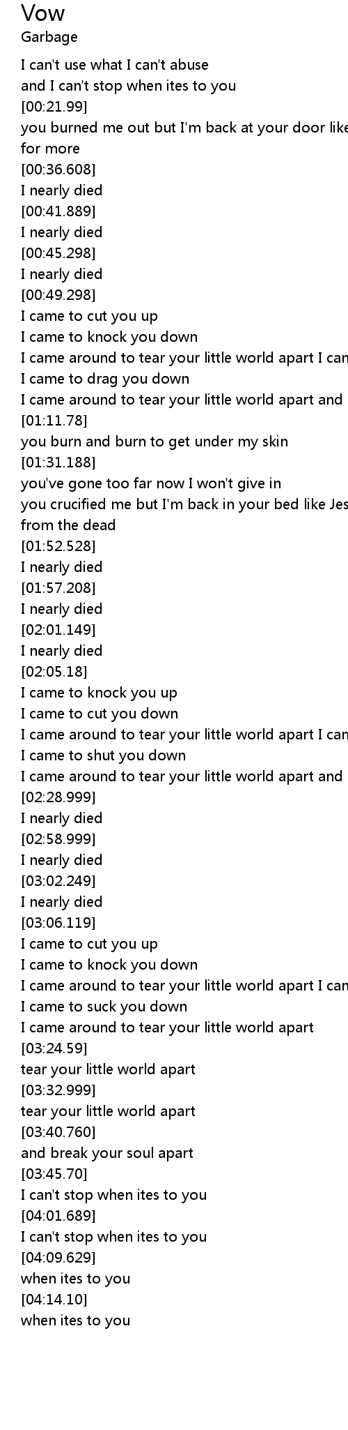 | [00:56.178] | I came around to tear your little world apart I came to shut you up |