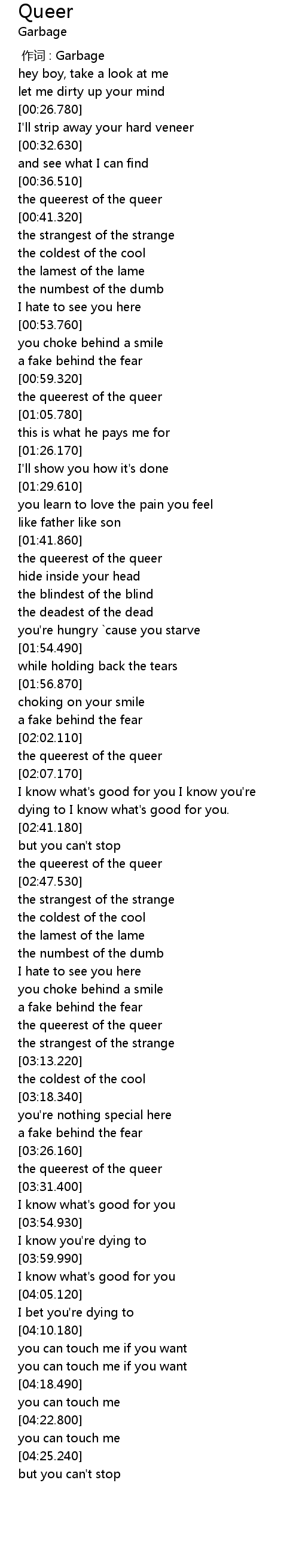 | [00:00.00] | 作词 : Garbage |