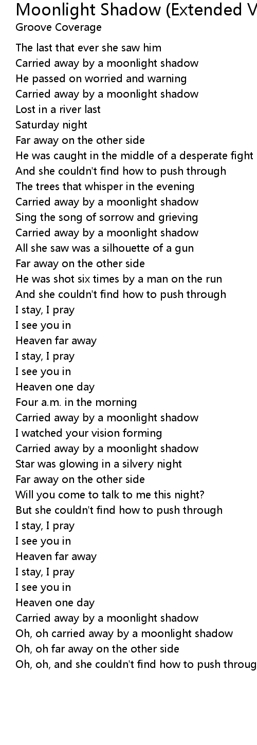Oh, oh carried away by a moonlight shadow |