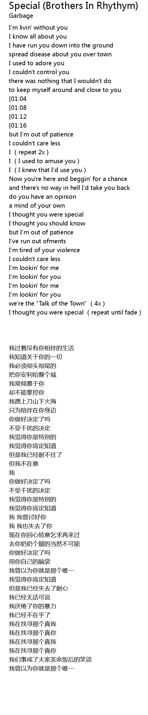 | [03:23] | I thought you were special (repeat until fade) |